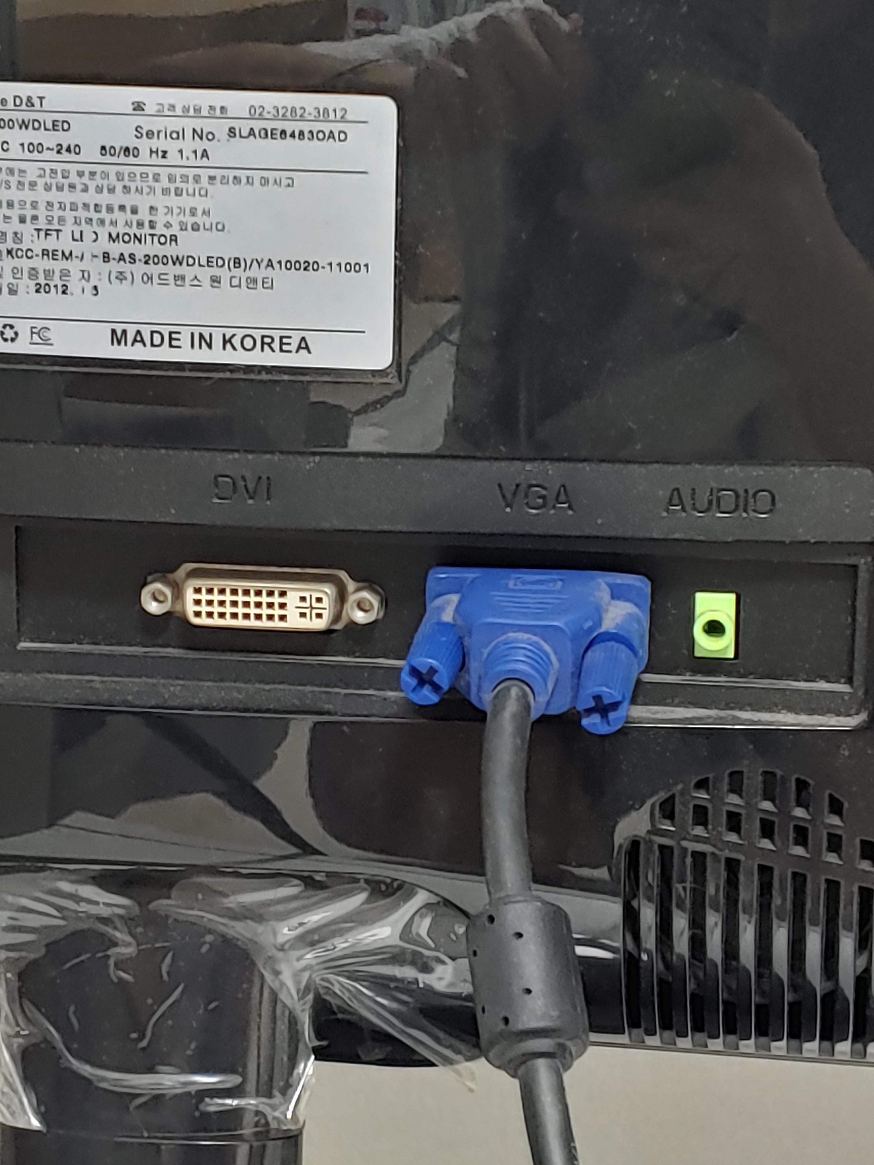 증말 꾸진 저의 구형 모니터! 파란색 꽂혀있는 옆부분이 DVI 부분인데요. 제가 사온 케이블은 일자 모양 그림 그려져 있고, 제 모니터는 십자모양이에요. 그래도 노프라블럼. 반 년 넘게 잘 쓰고 있답니다!